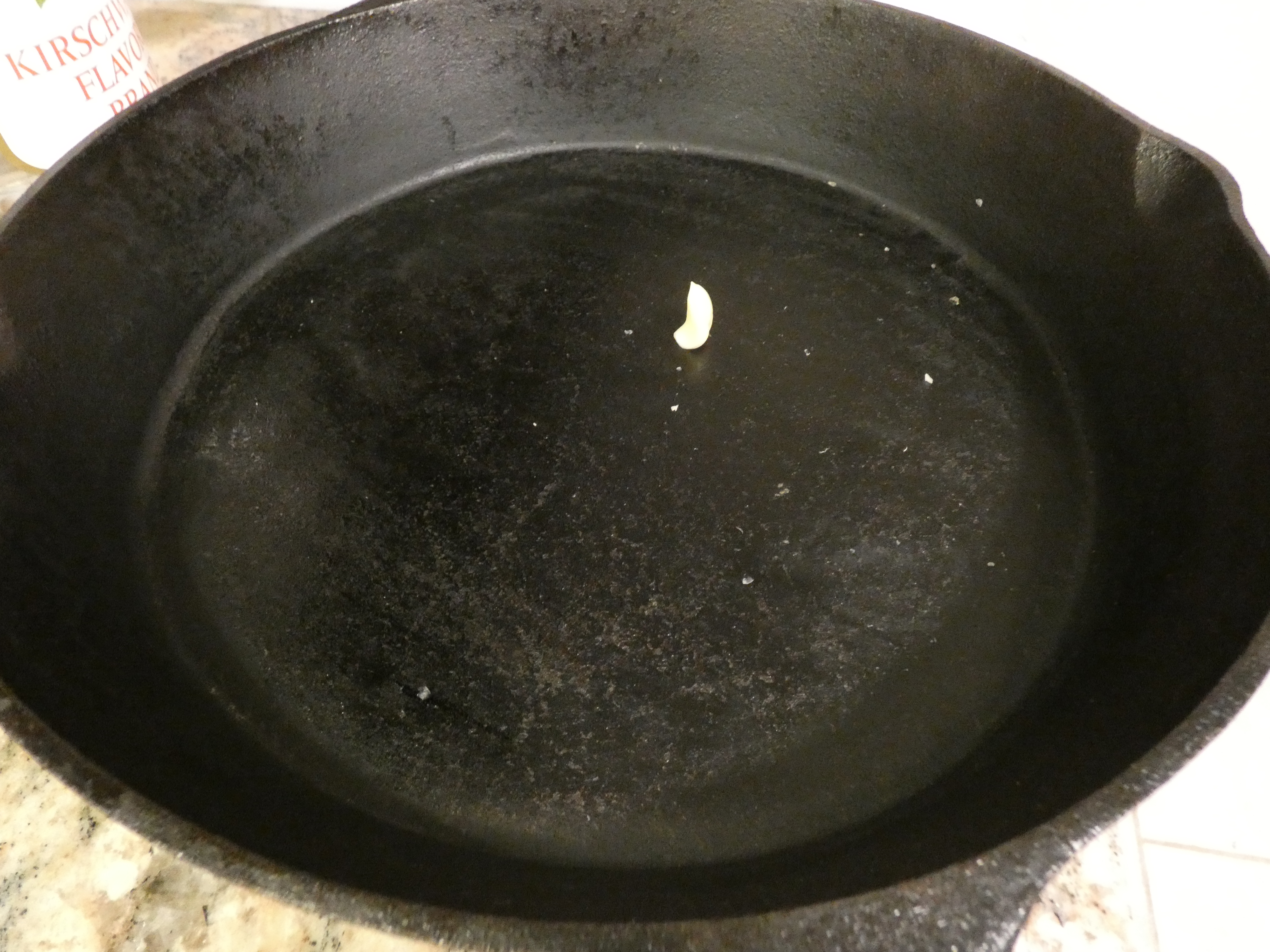• Cut a garlic clove in half, and rub it around the bottom of a large cast iron pan to get a nice little shiny layer of garlic goodness.