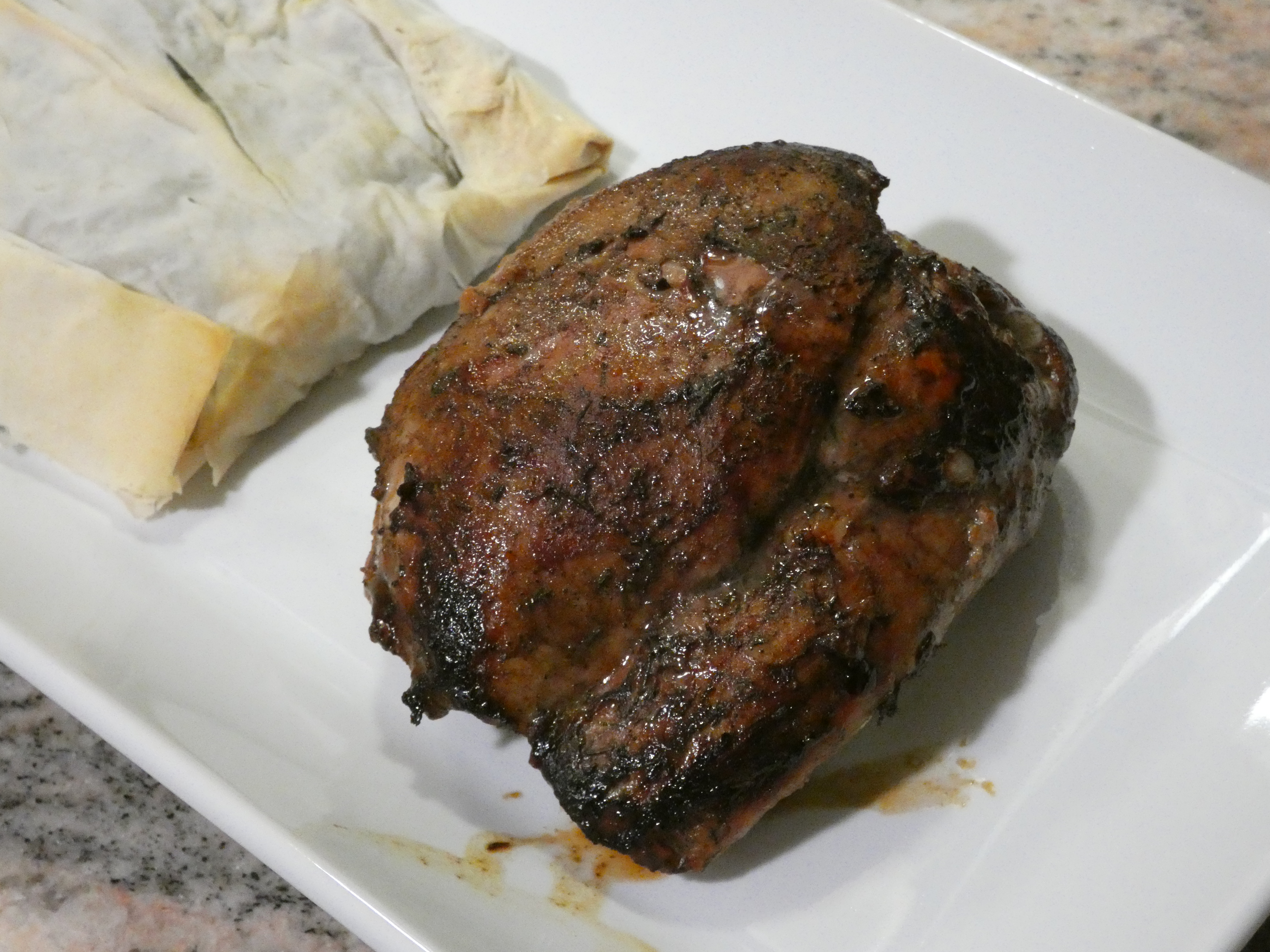 For this dinner, we picked the side dish first, and that’s what dictated the choice of protein. We had some leftover frozen spinach from when we made our Spinach Stuffed Turkey Meatballs, and we decided to use it (in conjunction with some Phyllo Dough we also had stowed away in the freezer) to make Spanakopita.