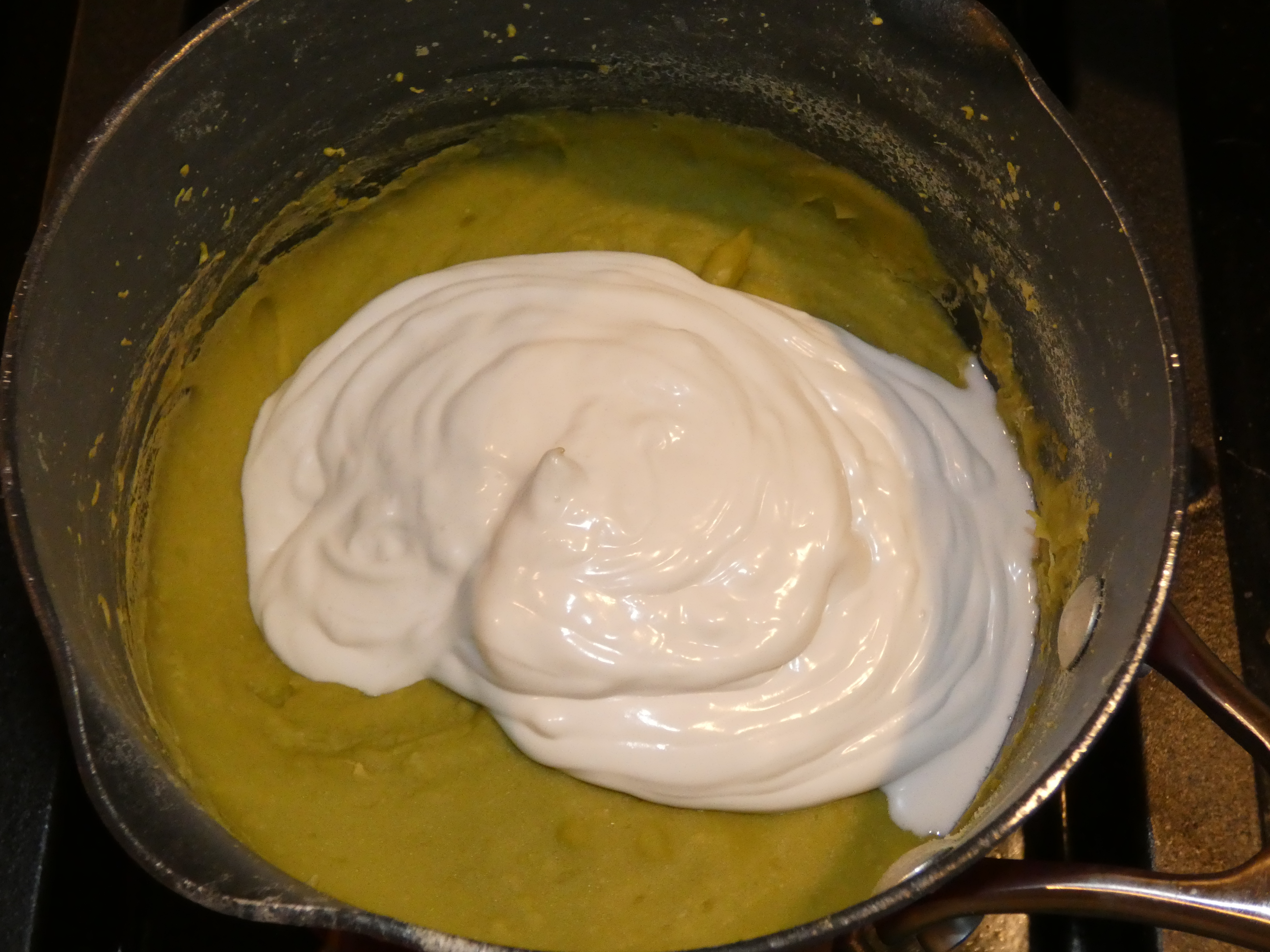 - When your chicken is nearly fully cooked, pour your pea sauce into your skillet, and stir to combine/coat, and let simmer together for the flavours to blend for another few minutes (or until your chicken is fully cooked).